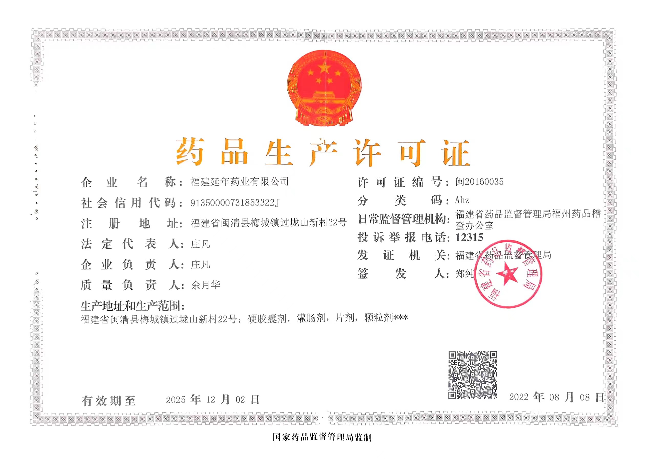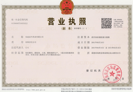 福建延年藥業(yè)有限公司位于福州市閩清縣城關(guān),工廠坐落在風(fēng)景秀美的梅城森林公園山腳下,公司前身是中國人民解放軍第9747工廠,創(chuàng)辦于1970年9月,隸屬南京軍區(qū)總后勤部,企業(yè)的地方名稱為福建閩清制藥廠。1998年6月為貫徹中央關(guān)于軍隊(duì)不再從事經(jīng)商活動(dòng)的決議,企業(yè)軍轉(zhuǎn)地改制移交地方,2001年9月企業(yè)改制,更名為福建延年藥業(yè)有限公司。